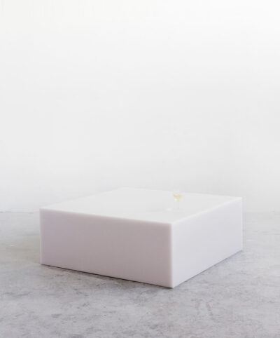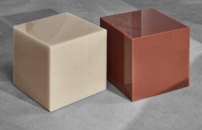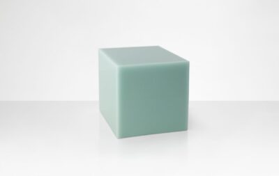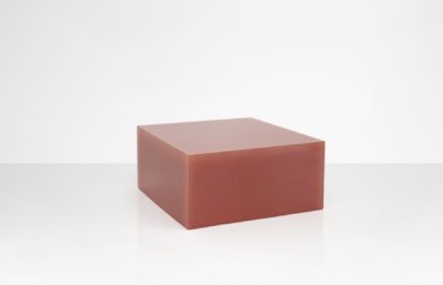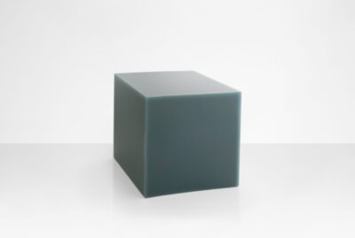 Marcelis works closely with fabricators to alter or intervene in production processes so the material itself becomes the central experience. The Candy Cube is perhaps the purest expression of that – geometry reduced to its simplest form, all attention redirected to what the resin does with light.