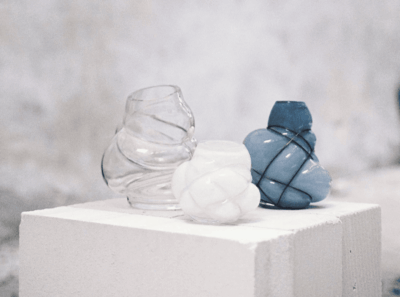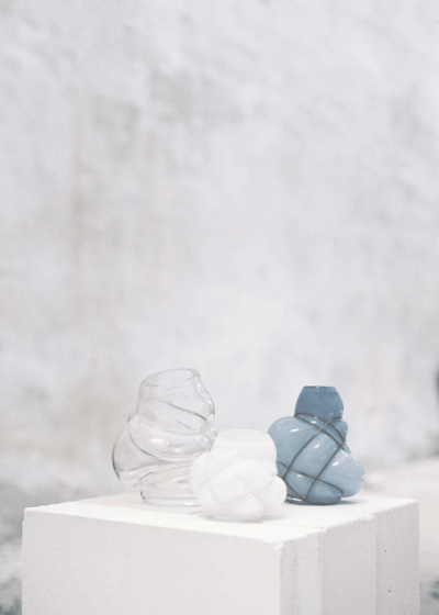 Materials: Vase; Clear and colored glass, thread in stainless steel
