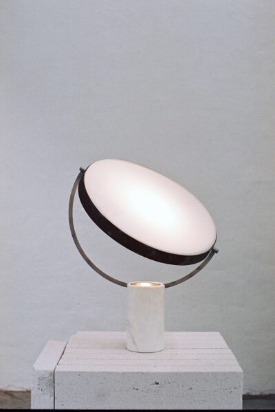Materials: Carrera Marble, Stainless Steel and opal acrylic.